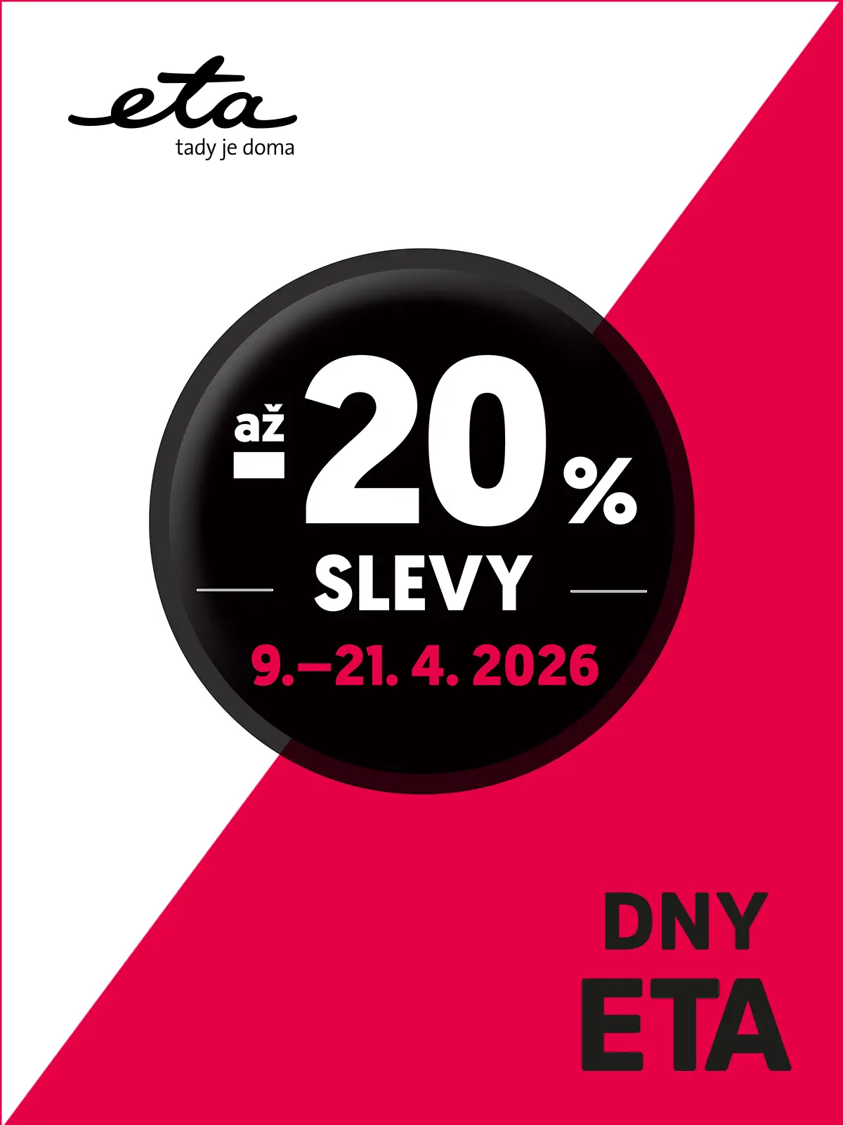DNY ETA platí v termínu od 9. 4. – 21. 4. 2026 nebo do vyprodání zásob. Akci nelze kombinovat ani sčítat s jinými akcemi a slevami.