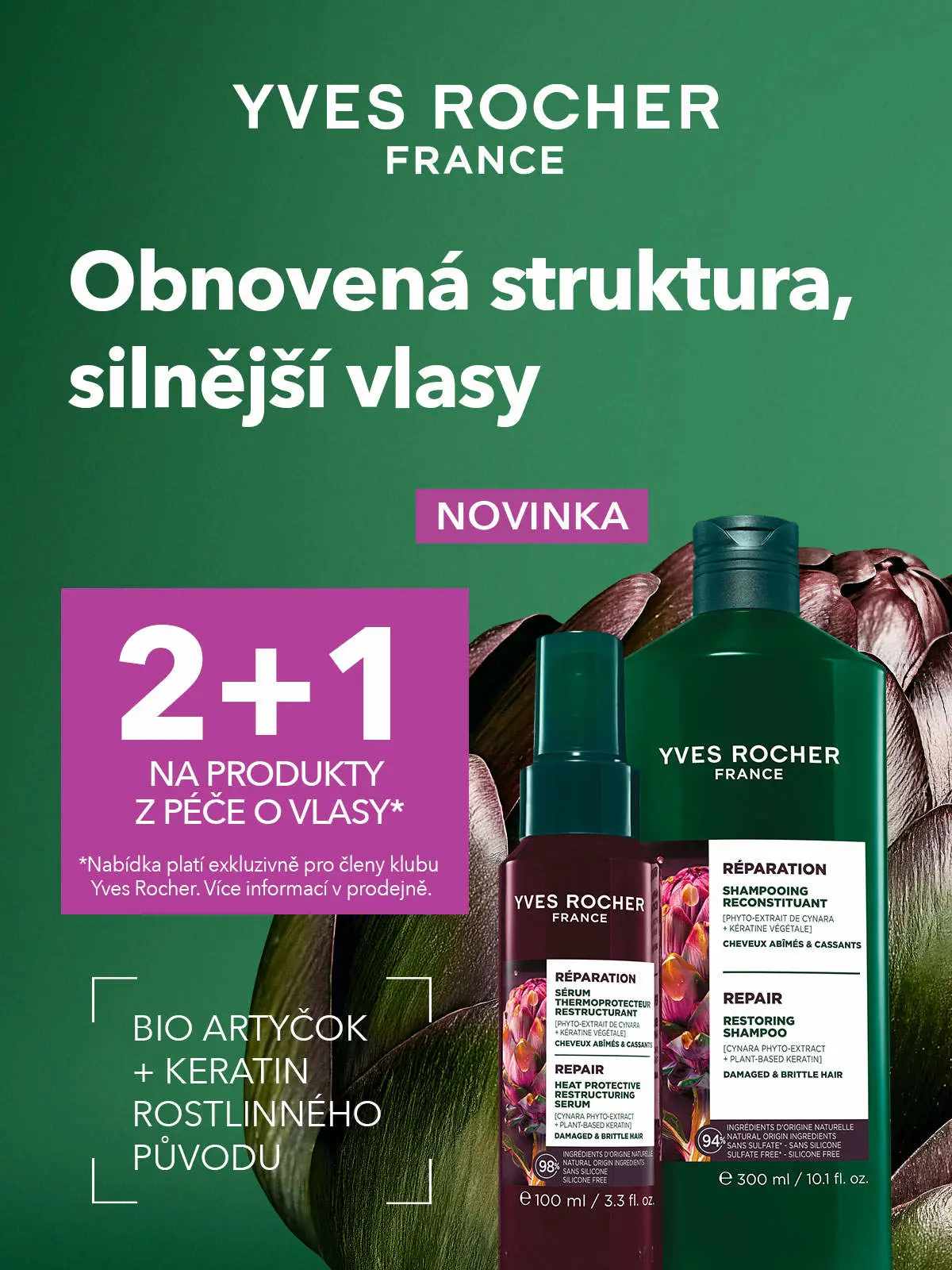 Přijďte do prodejny rostlinné kosmetiky Yves Rocher a objevte novou řadu produktů pro regeneraci vlasů. Členové věrnostního klubu Yves Rocher mohou navíc až do 5. 5. 2026 využít jedinečnou nabídku 2+1 zdarma na všechny produkty vlasové péče! Více informací v prodejně Yves Rocher.